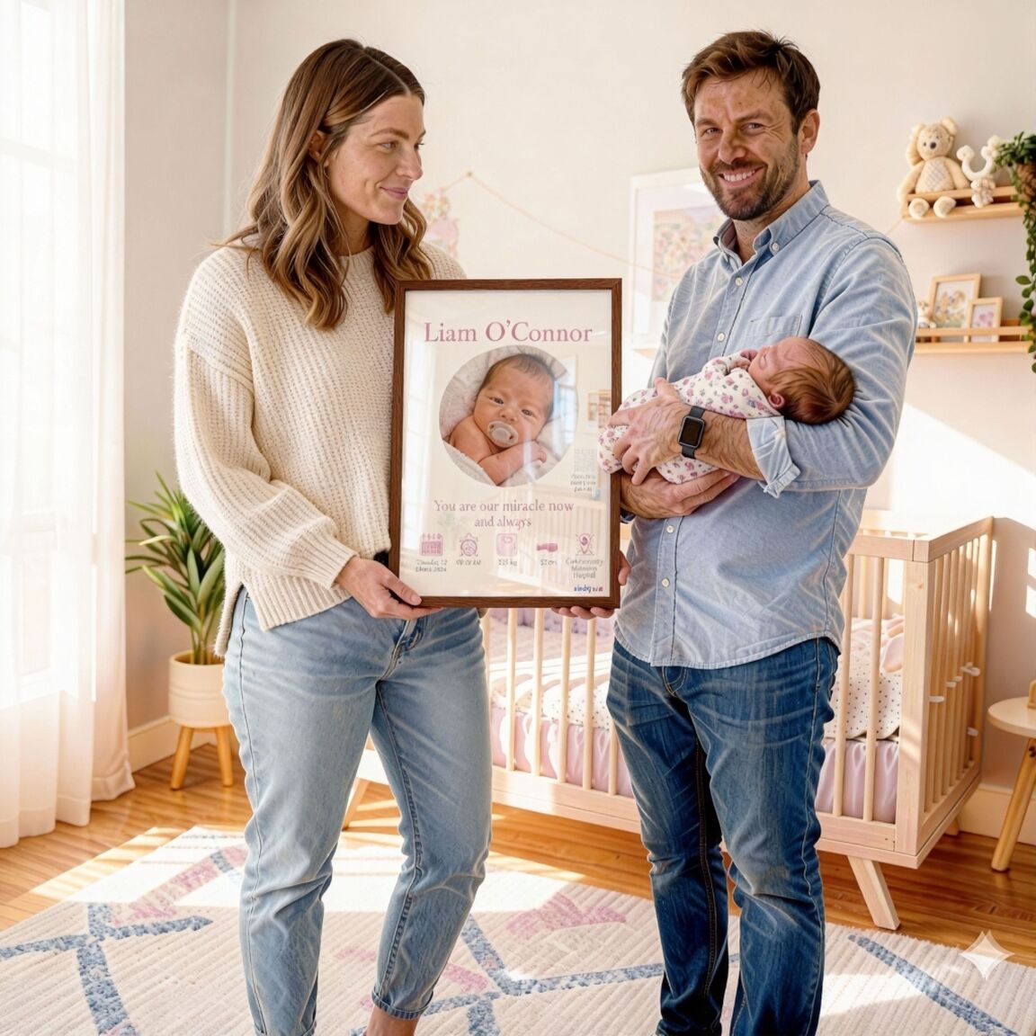 Capture the day your world changed with a premium personalized birth frame. High-quality, baby-safe, and designed to last a lifetime.